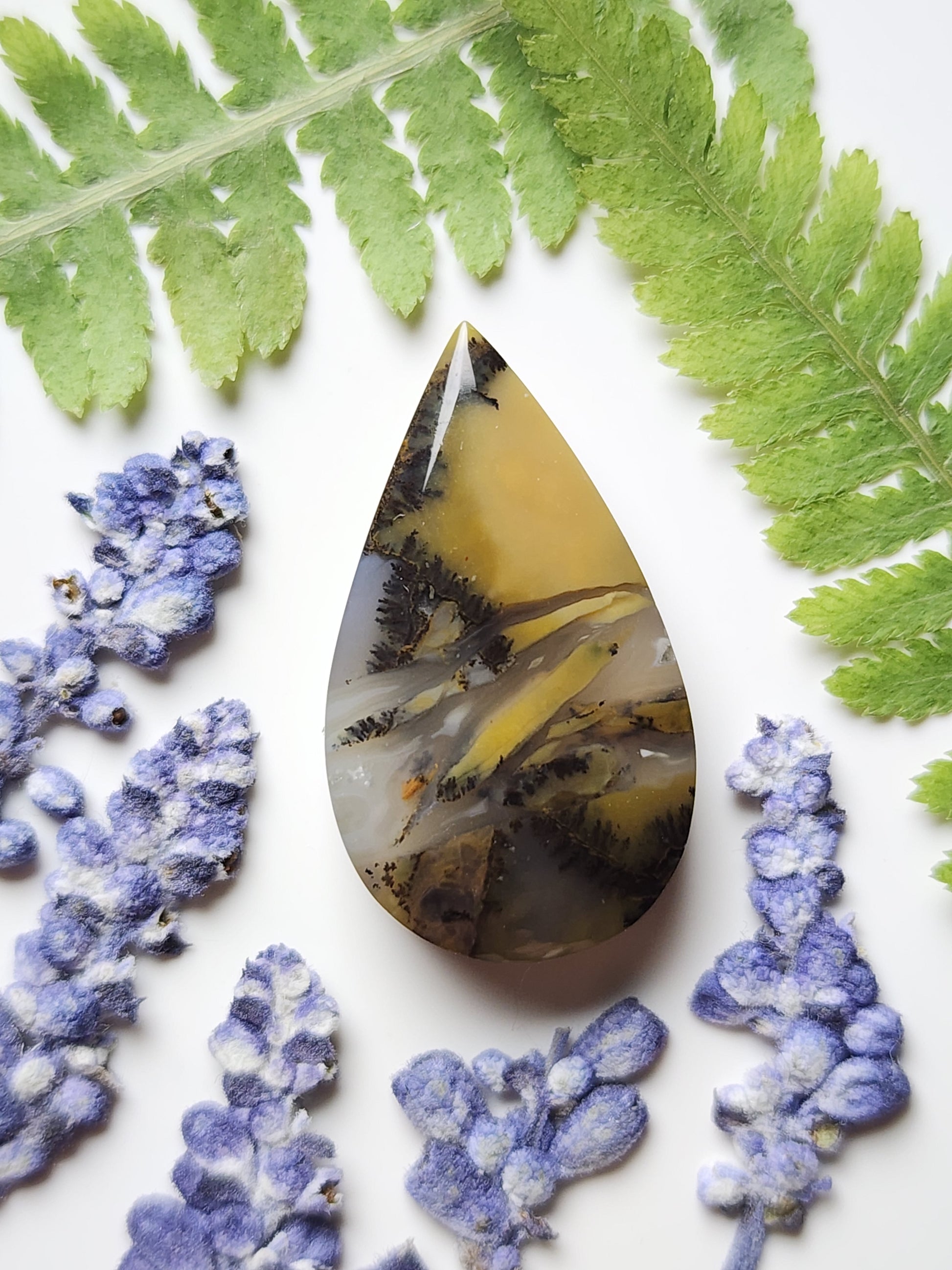 Mined in Nevada, Amethyst Sage Agate is known for its dreamy lavender hues and inky black dendrites that resemble windswept trees or desert brush. The soft purple tones come from amethystine quartz, while the fern-like inclusions are formed by manganese and iron.