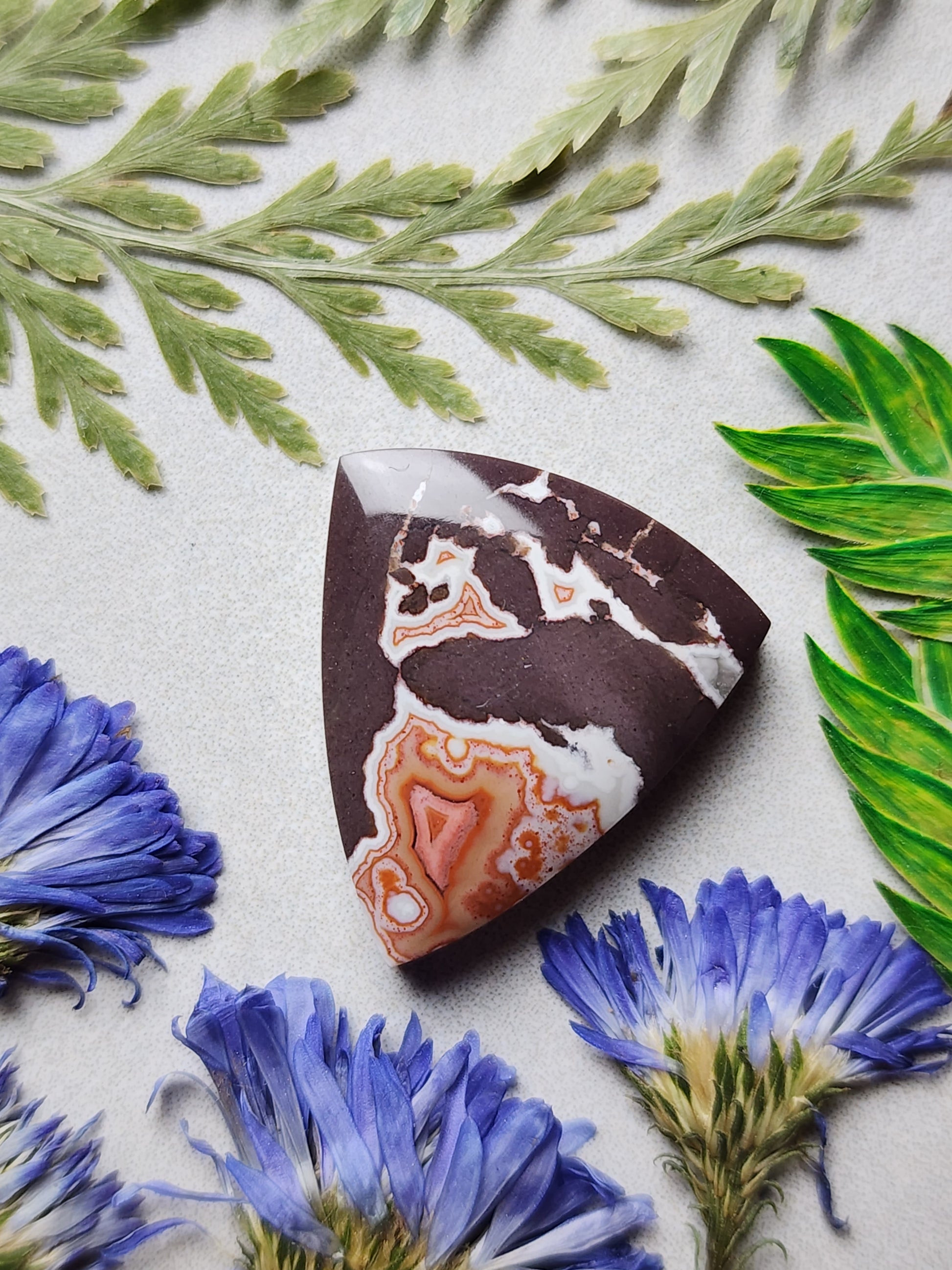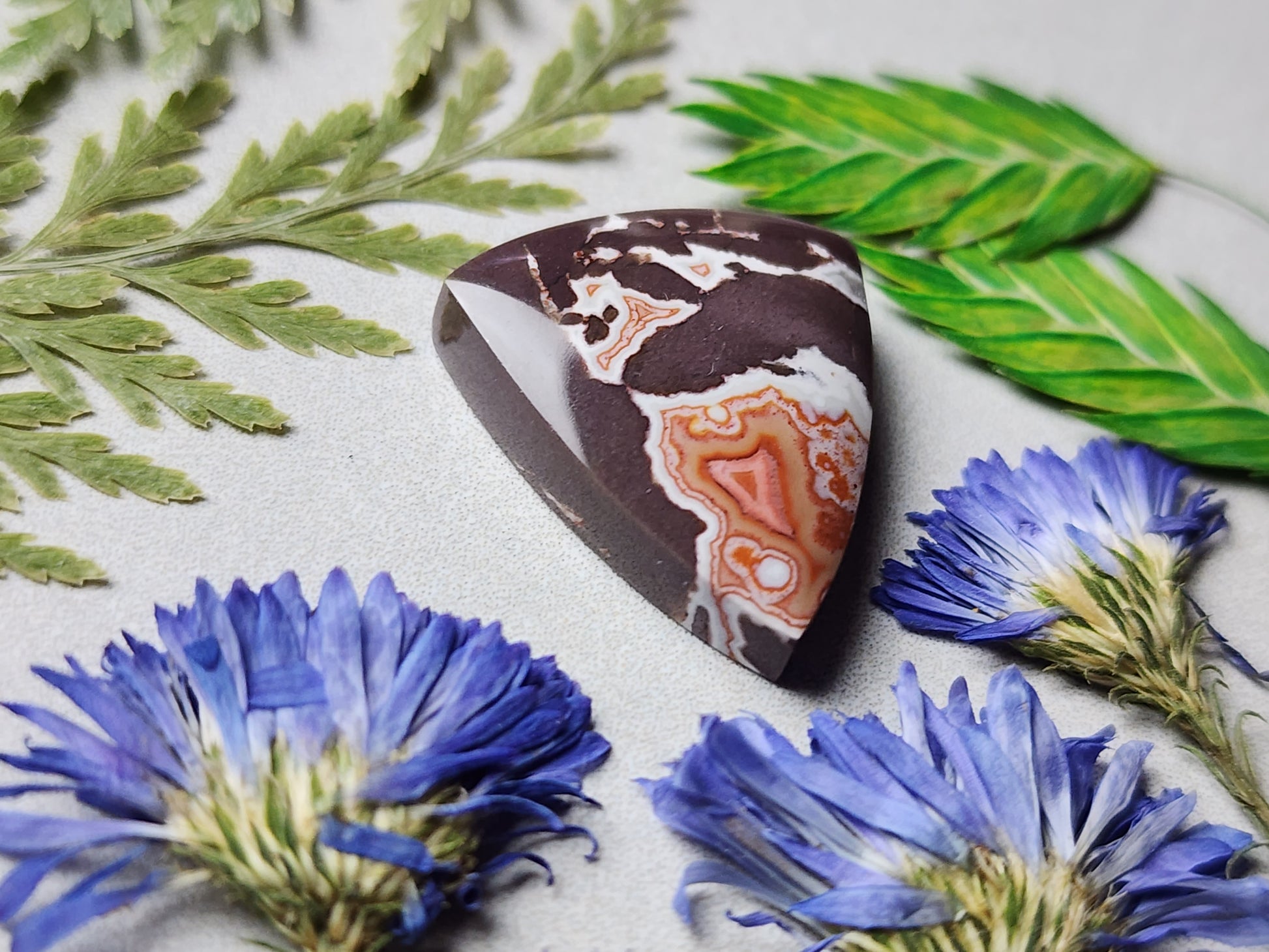 Dryhead Agate — a classic Montana beauty from the Pryor Mountains near Bighorn Canyon, born of fire and time. Layers of honeyed orange, mocha, and ivory twist together like desert canyons at sunset. Each piece tells a quiet story of ancient waters and volcanic ash, sealed away for millennia until now. A timeless American agate — no longer actively mined, and highly collectible.