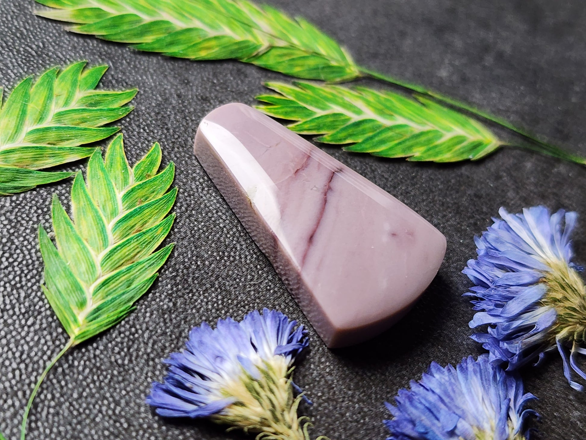 Hyacinth Jasper waa discovered in Utah, USA, originally coming from a small, single-location deposit near the Tiffany Stone region. The site is no longer accessible, which means no new rough is being produced and material on the market is limited. Hyacinth Jasper is recognized for its soft, watercolor-style colors ~ lavender, dusty rose, pink-purple, cream, and muted greys , often with light brecciation or natural veining. With a hardness of ~6.5–7 Mohs, it’s stable and ideal for cabochons. Because of the closed access and small original deposit, high-quality pieces are considered collectible and naturally one-of-a-kind.