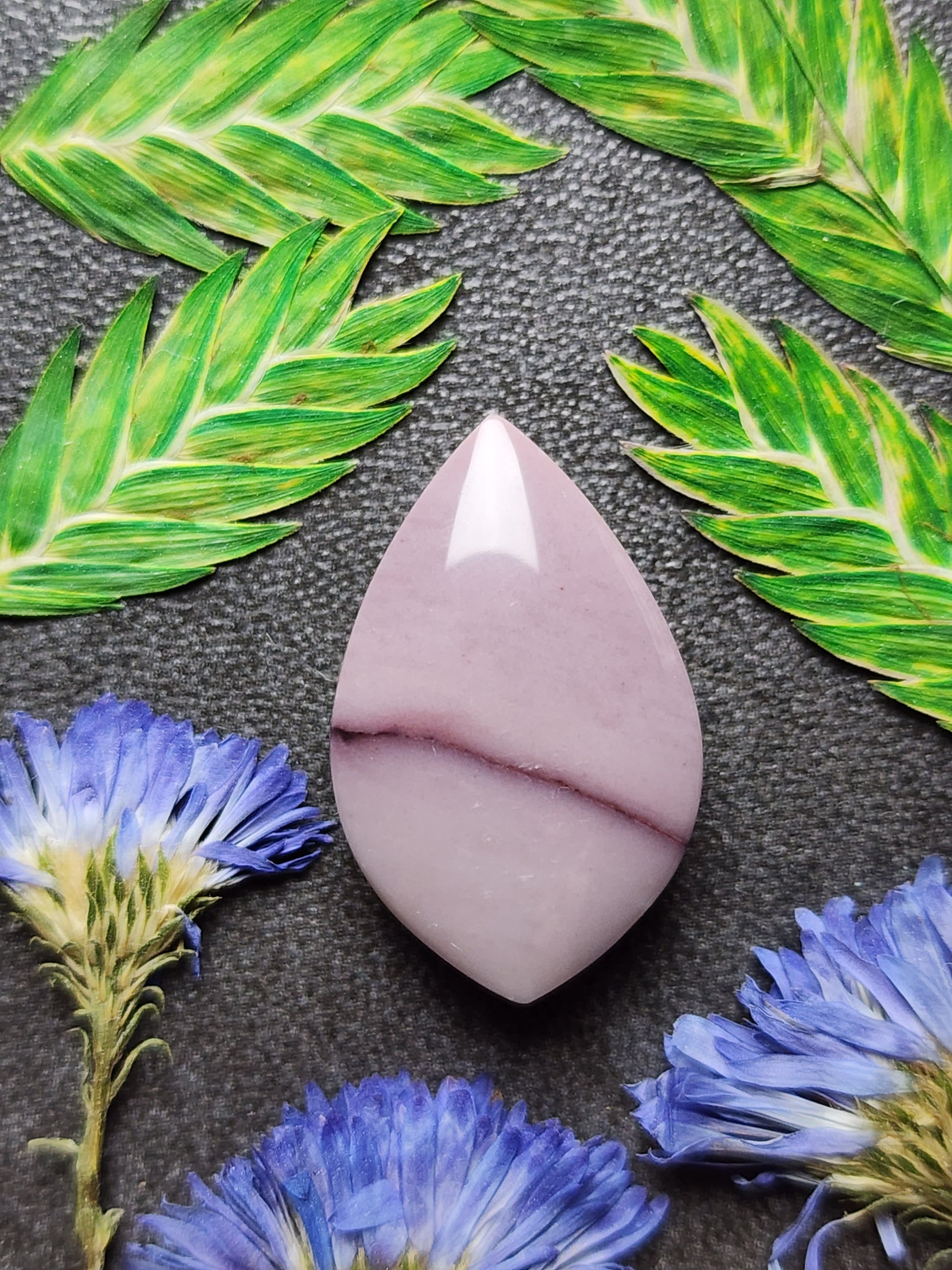 Hyacinth Jasper was discovered in Utah, USA, originally coming from a small, single-location deposit near the Tiffany Stone region. The site is no longer accessible, which means no new rough is being produced and material on the market is limited. Hyacinth Jasper is recognized for its soft, watercolor-style colors ~ lavender, dusty rose, pink-purple, cream, and muted greys , often with light brecciation or natural veining. With a hardness of ~6.5–7 Mohs, it’s stable and ideal for cabochons. Because of the closed access and small original deposit, high-quality pieces are considered collectible and naturally one-of-a-kind.
