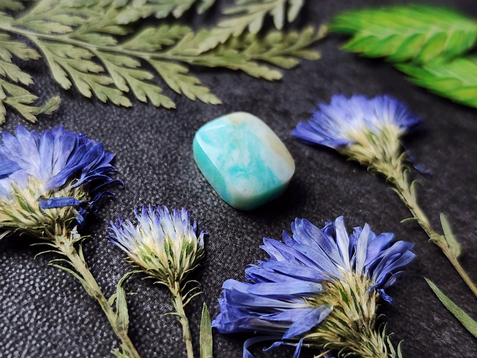 This rare fossilized wood from Indonesia features stunning naptural blue opal tones, formed over millions of years as silica-rich water replaced the original wood. Known for its vivid color and detailed preservation, each piece is a unique blend of ancient history and mineral beauty.